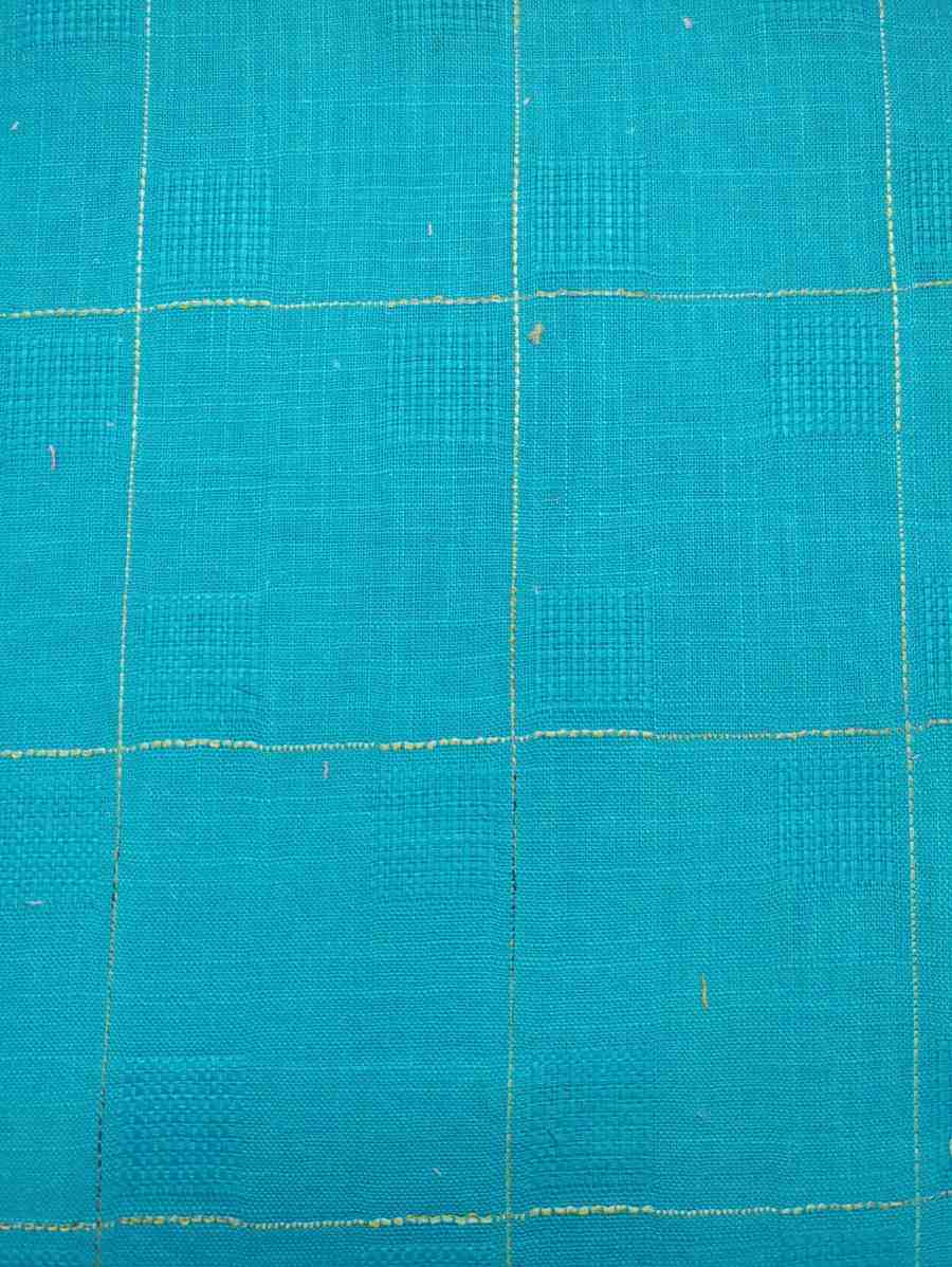 • Color: Turquoise base with golden yellow thread outlining square checks