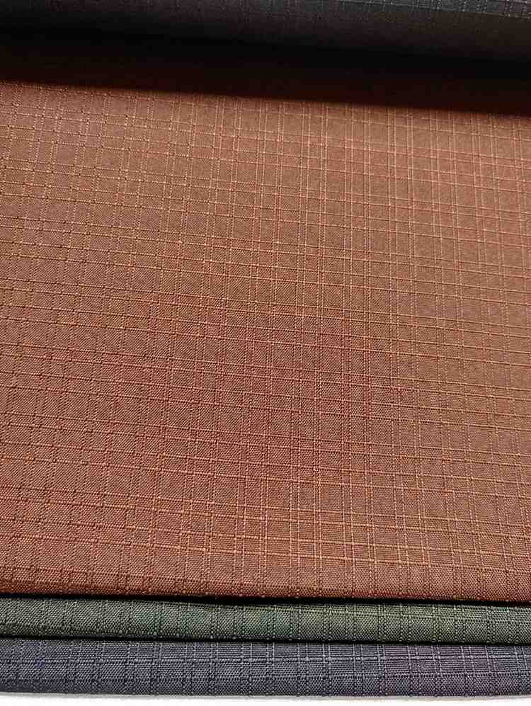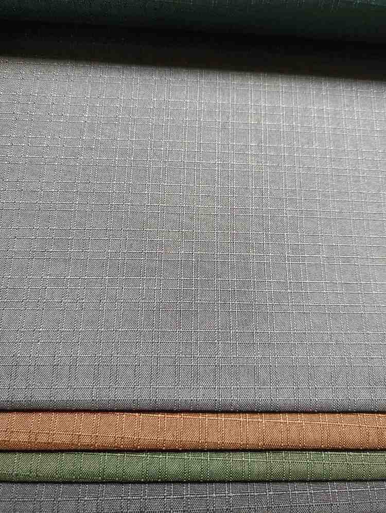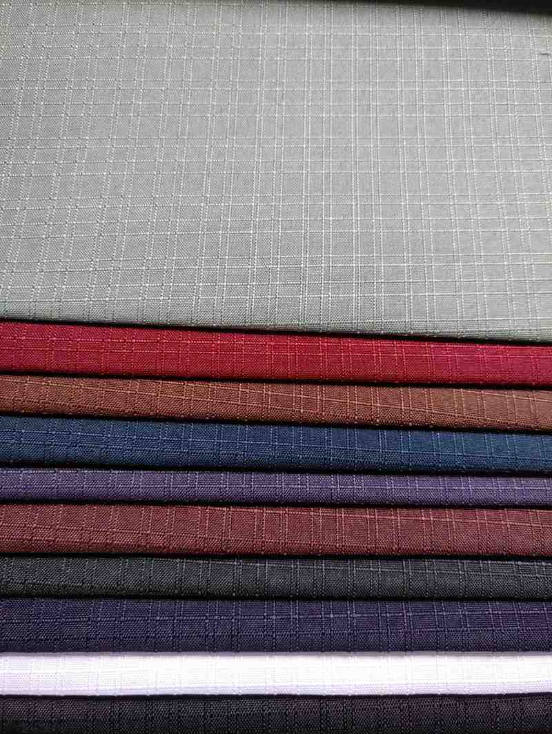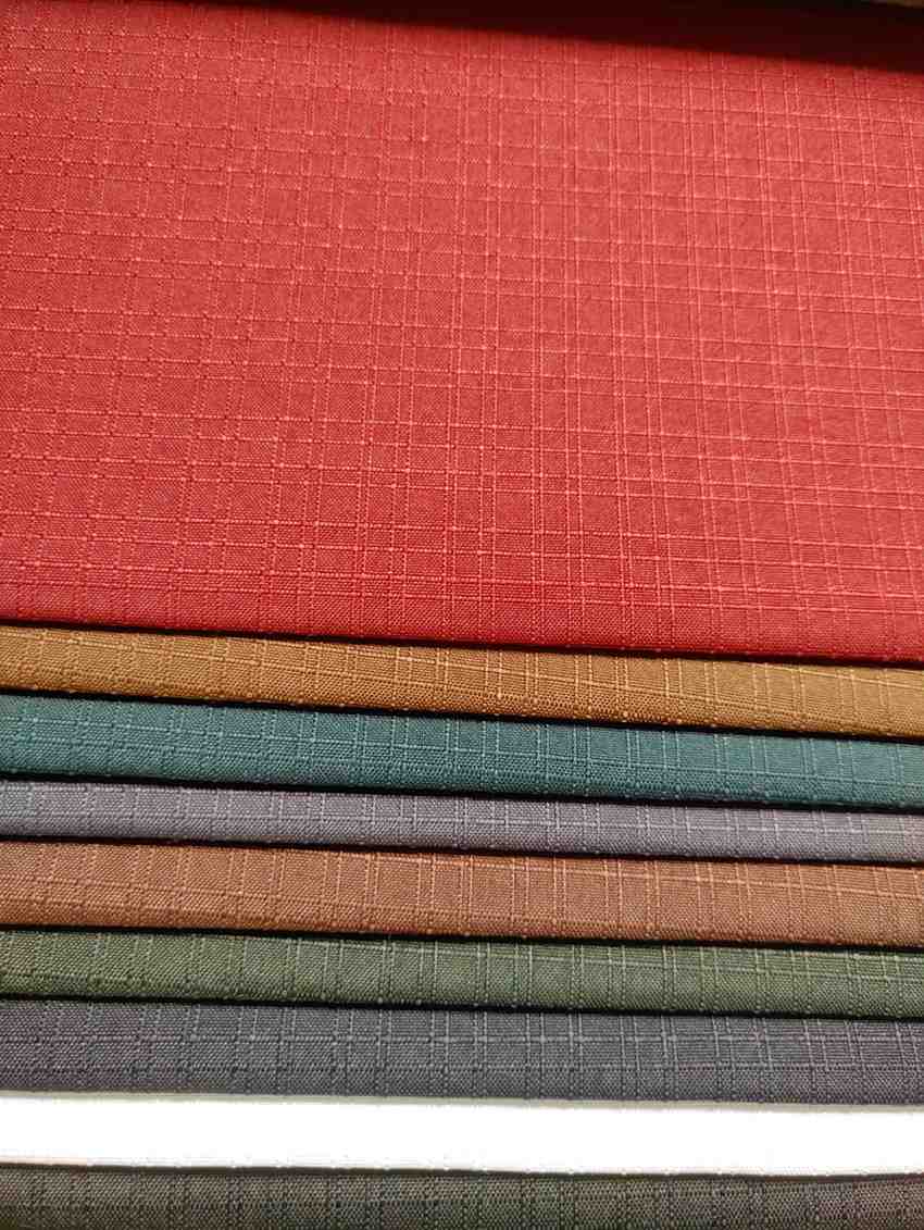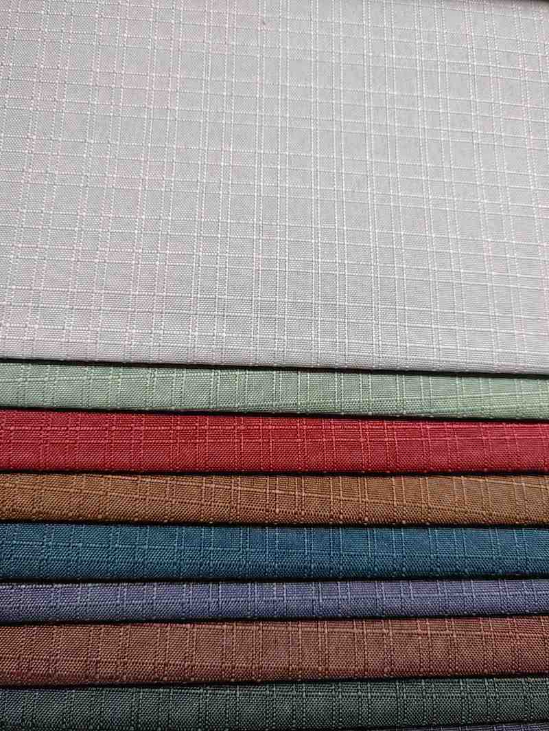 The fabrics appear to be made of a woven material, possibly cotton or polyester, and have a smooth, even texture. The grid pattern on each swatch adds a touch of visual interest to the overall design. The colors range from earthy tones like brown and green to more neutral shades like gray, making them suitable for a variety of applications, such as upholstery, curtains, or clothing.