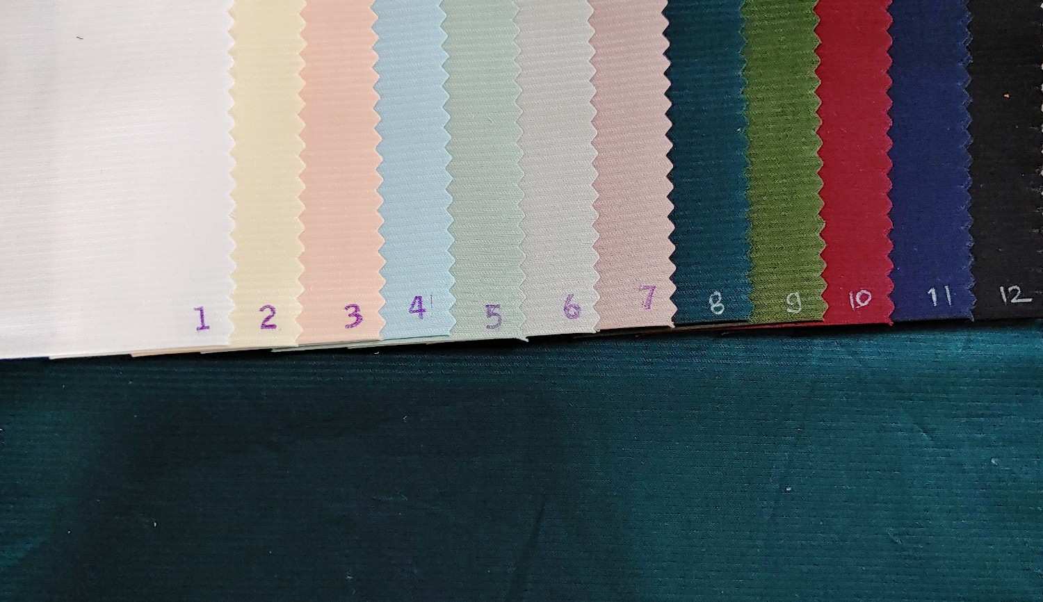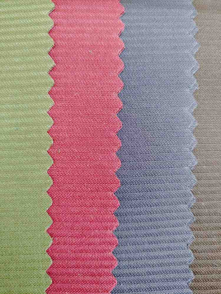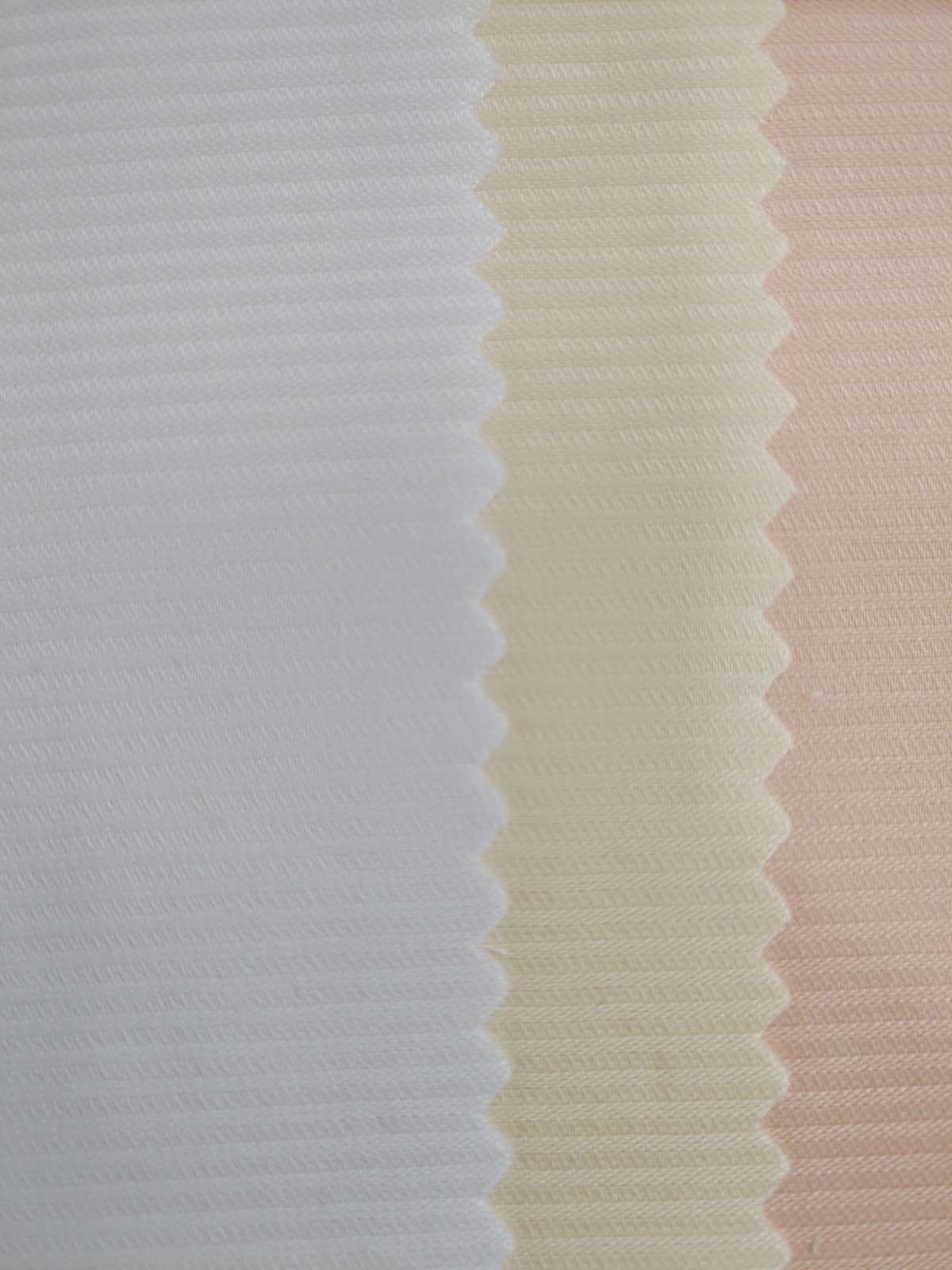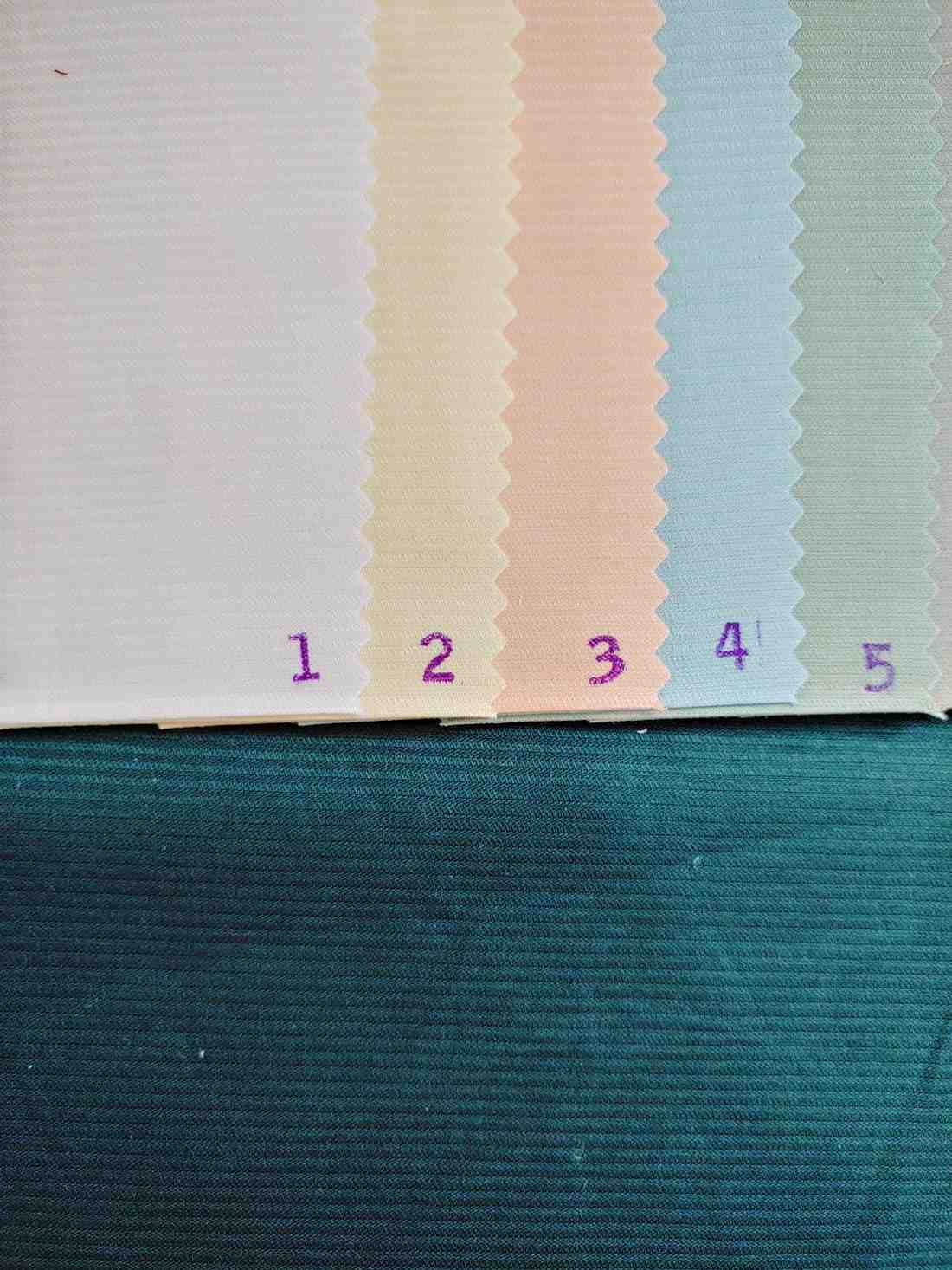The fabric’s description can be summarized as follows:- Material: Pleated fabric- Pattern: Lines- Colors: Pastel shades including pink, white, green, blue, light pink, and beige- Texture: Textured surface