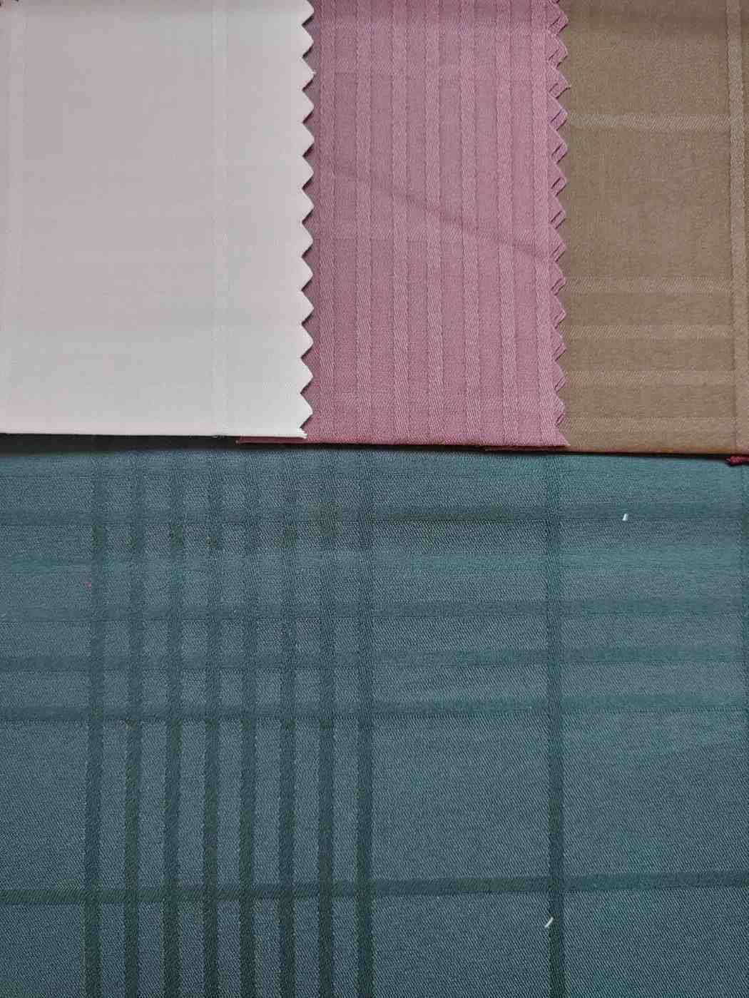 The swatches include elegant tones such as white, sky blue, beige, wine, teal, and dark olive, offering a refined palette suitable for classy shirts and evening wear.