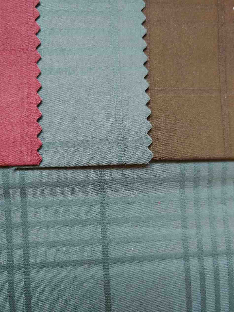 This is a Cotton Tencel Dobby fabric, crafted with a perfect blend of cotton and tencel yarns. The dobby weave pattern adds a subtle texture, giving the fabric a luxurious look and premium feel. It is soft, breathable, and drapes beautifully, making it ideal for both formal and semi-formal wear.