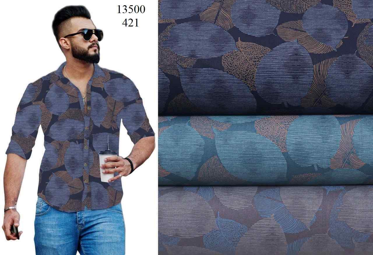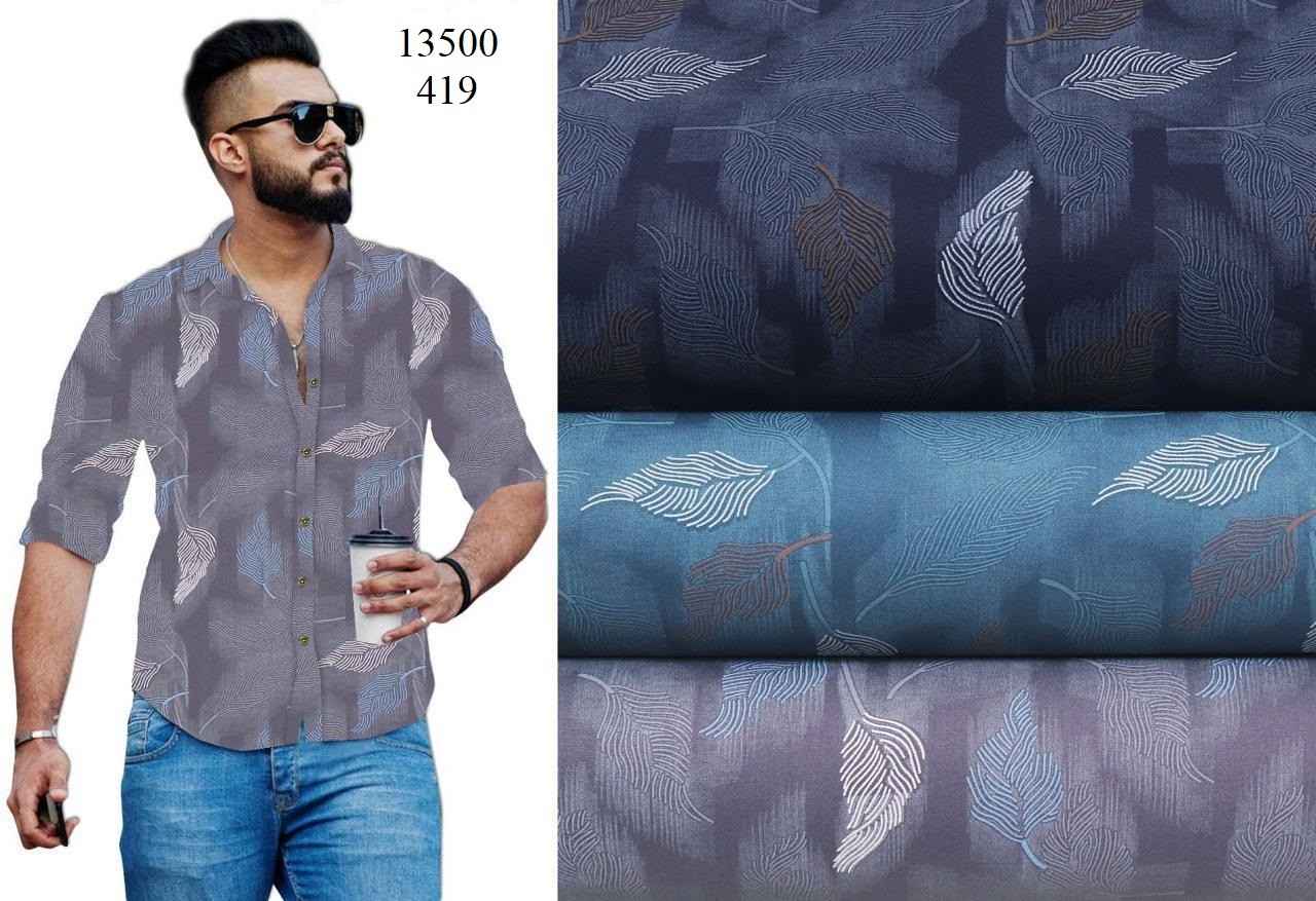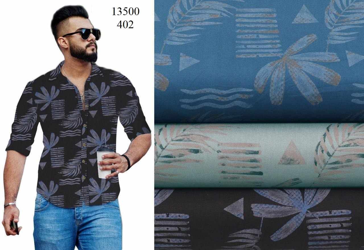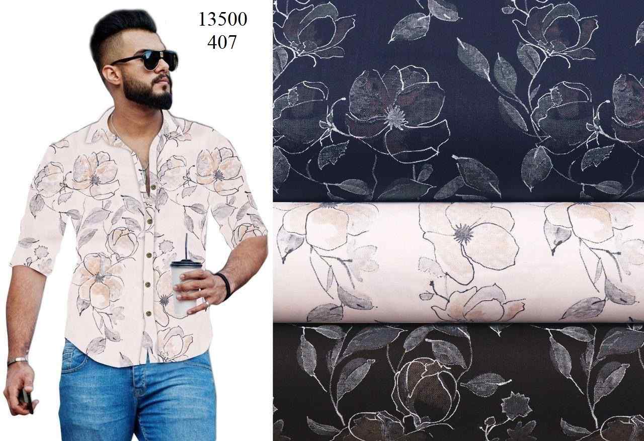 This fabric is a printed cotton blend shirting fabric featuring a subtle leafy branch design that gives it a stylish and modern look. It combines comfort with elegance, making it perfect for casual as well as semi-formal wear.