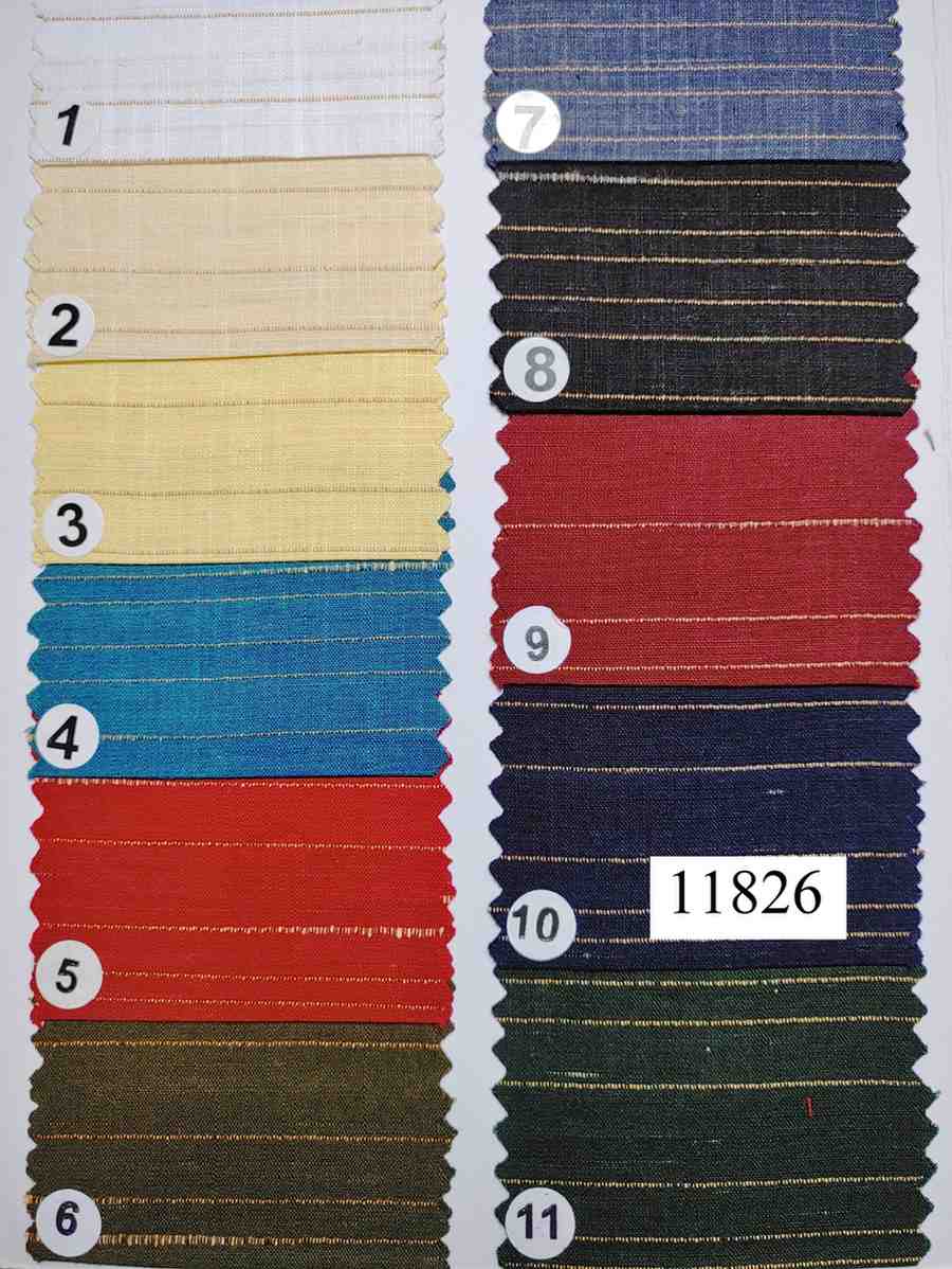 - Weave Type:Â Loose plain weave with decorative metallic thread insertions