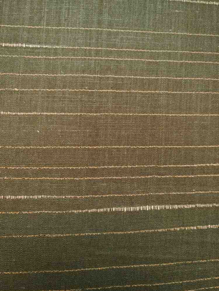 - Material (Probable):Â Handloom cotton or linen blend with metallic zari threads