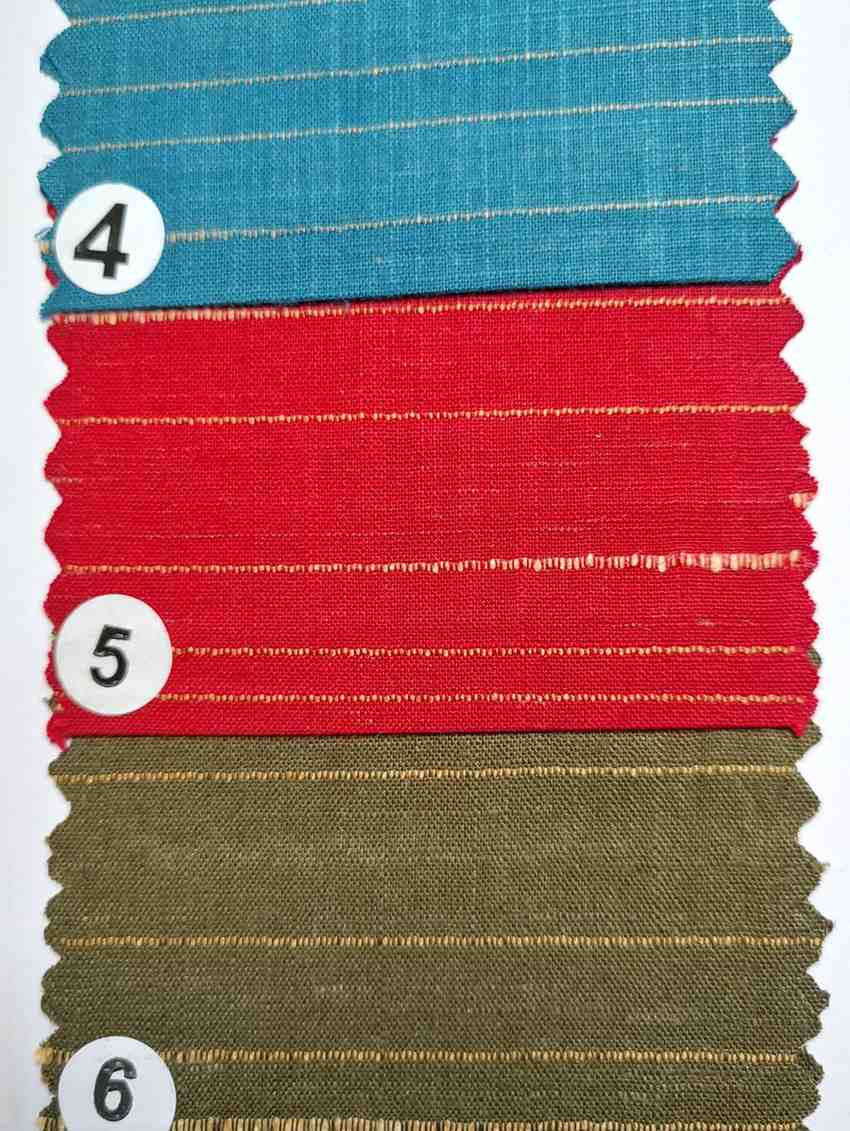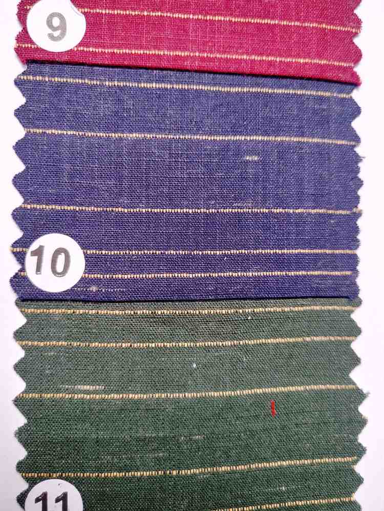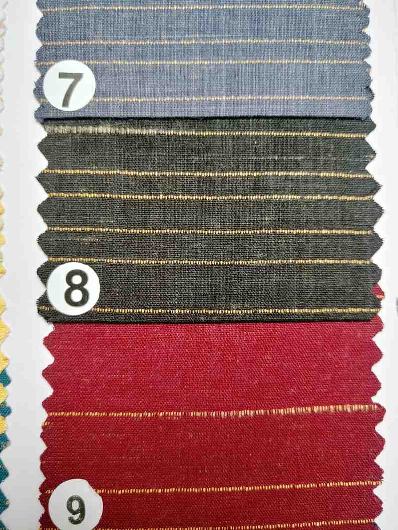 - Texture:Â Slightly coarse and slubby with visible weave and golden yarn details