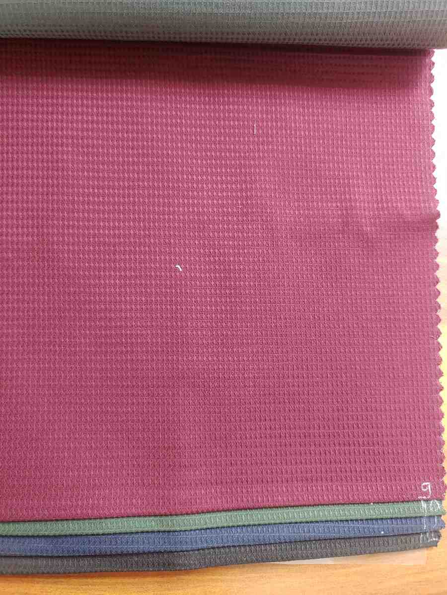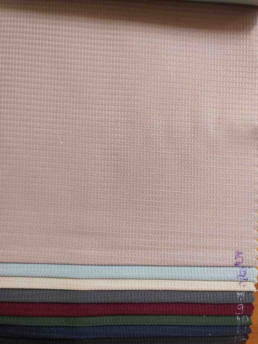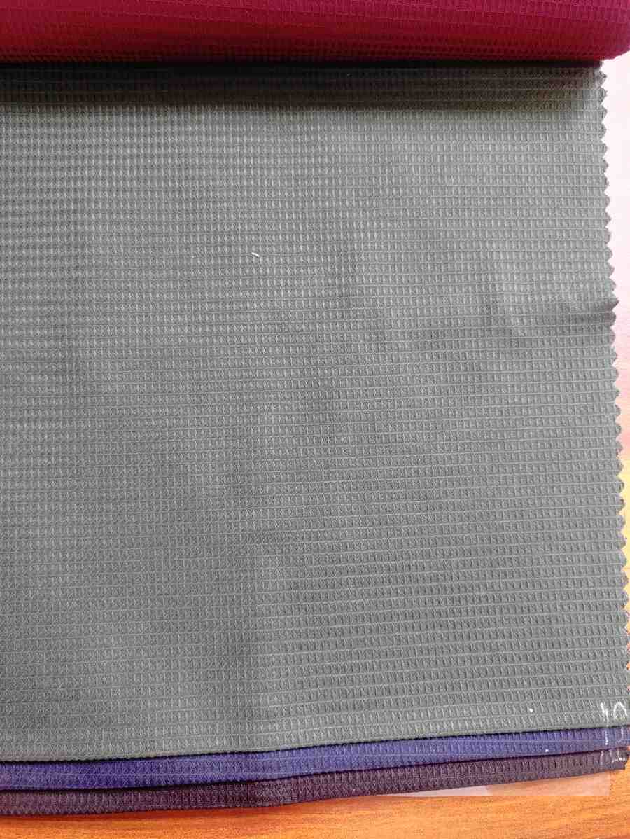 The fabric features a waffle-like grid texture, characterized by small square or diamond-shaped recessed patterns. This gives it a three-dimensional, slightly raised surface. - Material (likely):