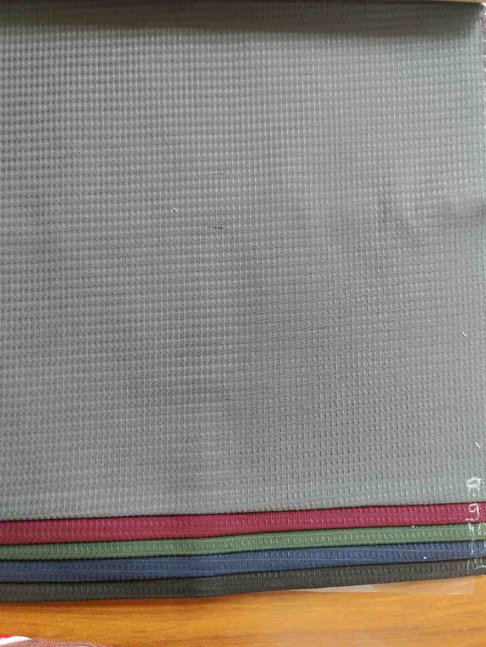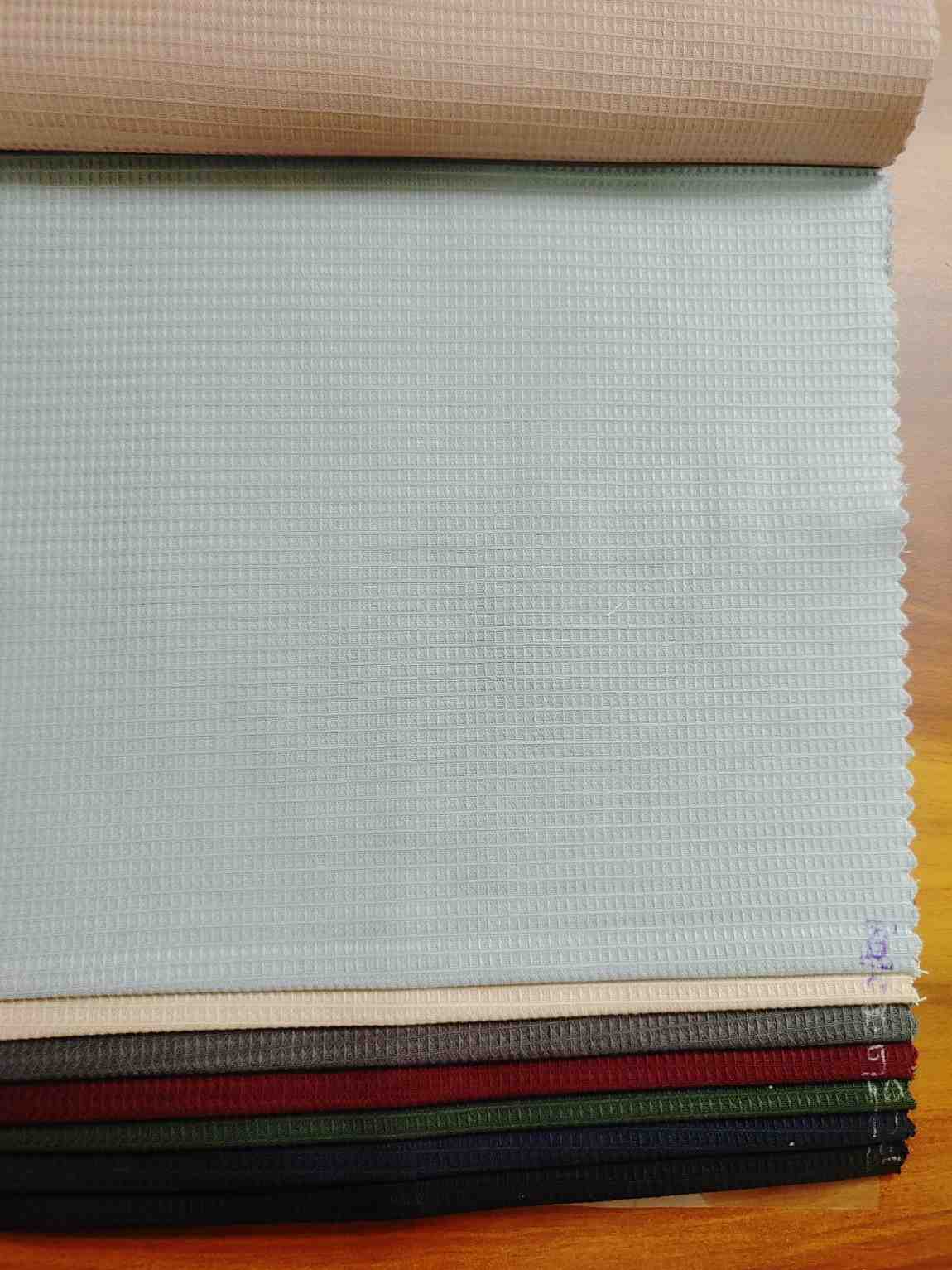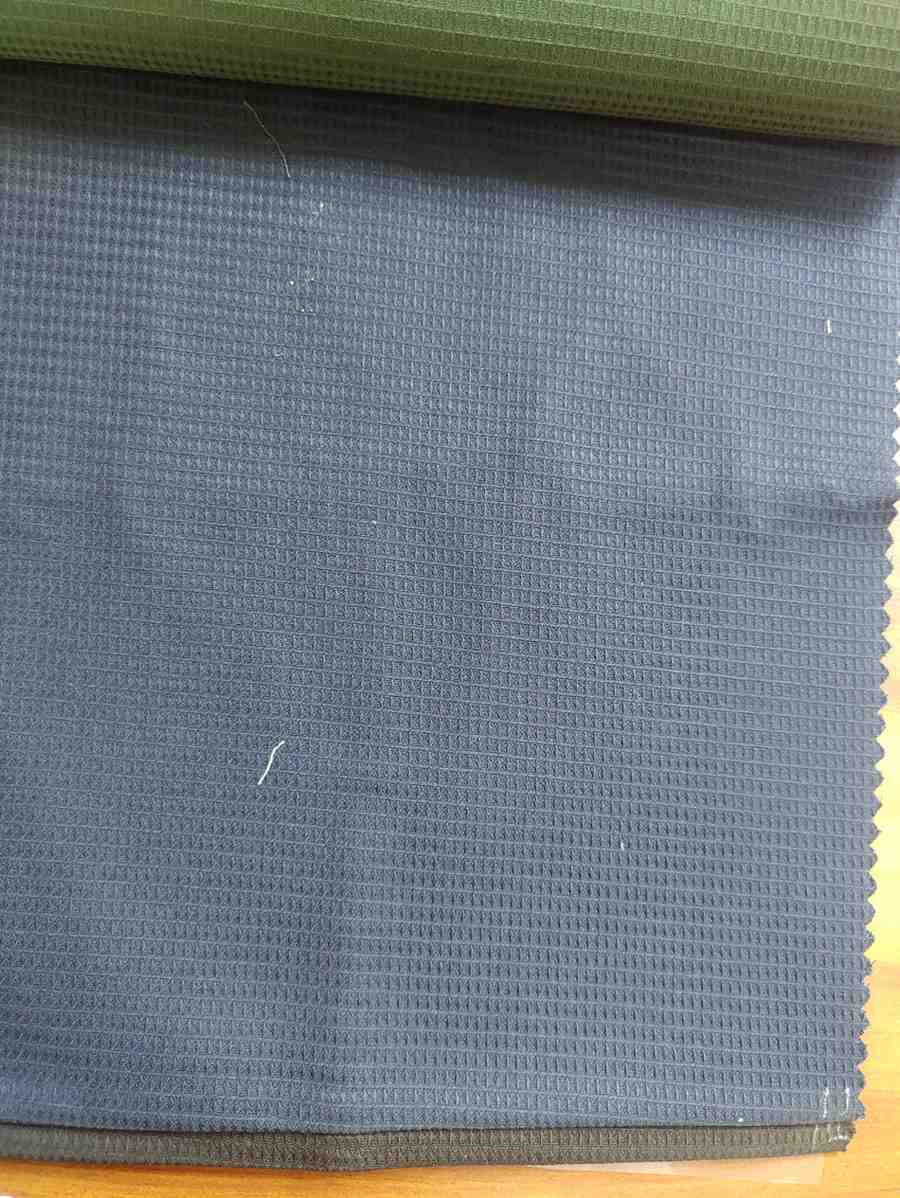 The fabric features a waffle-like grid texture, characterized by small square or diamond-shaped recessed patterns. This gives it a three-dimensional, slightly raised surface. - Material (likely):