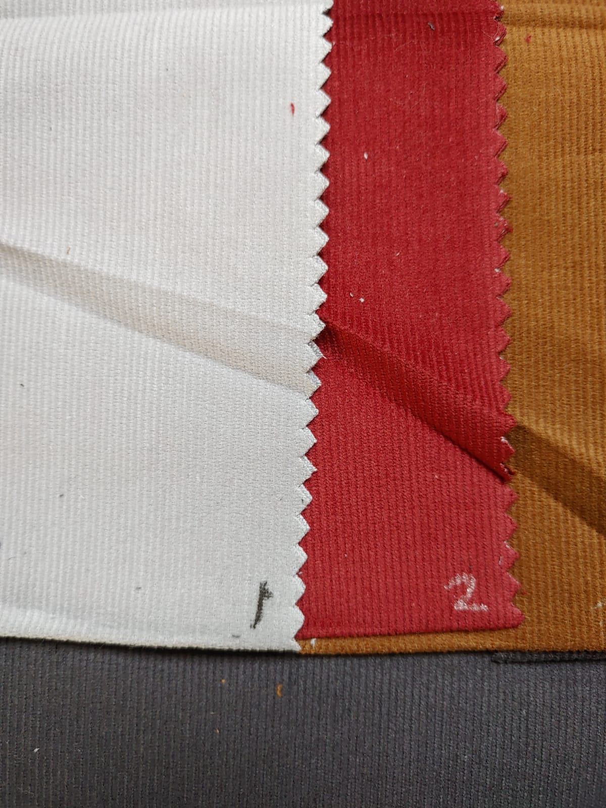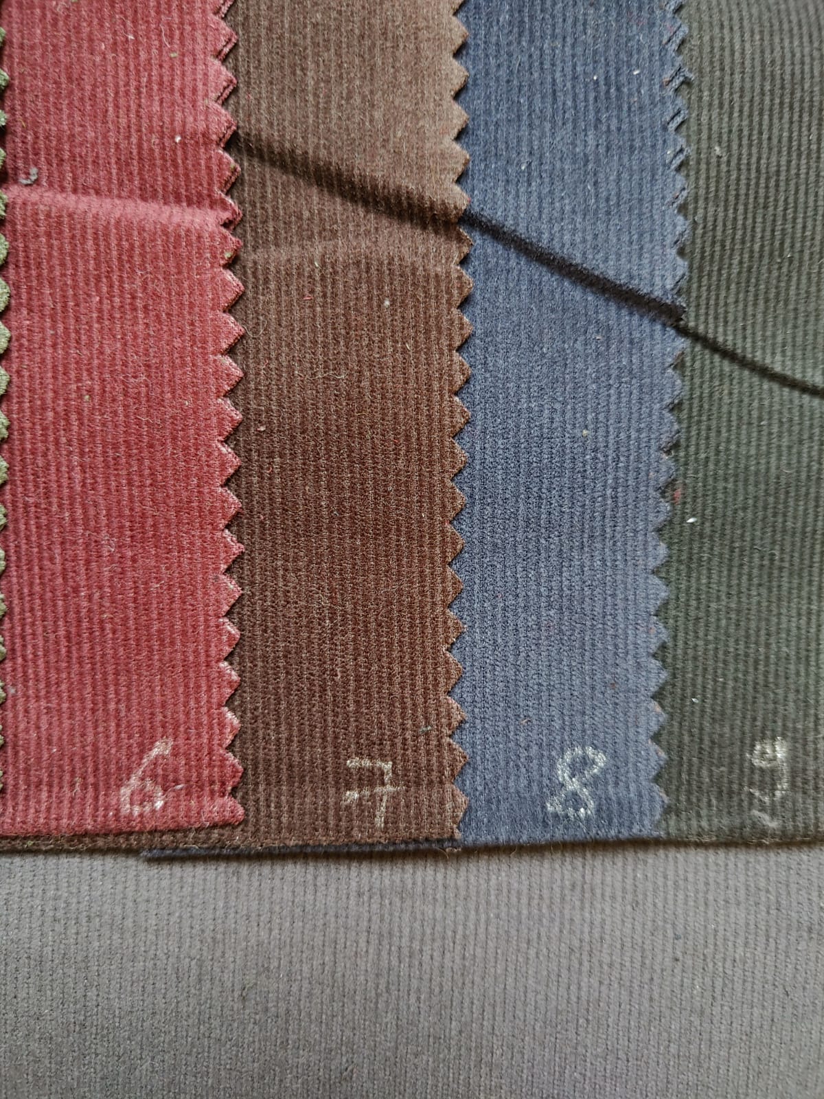 Texture: Soft, ribbed surface with fine wales